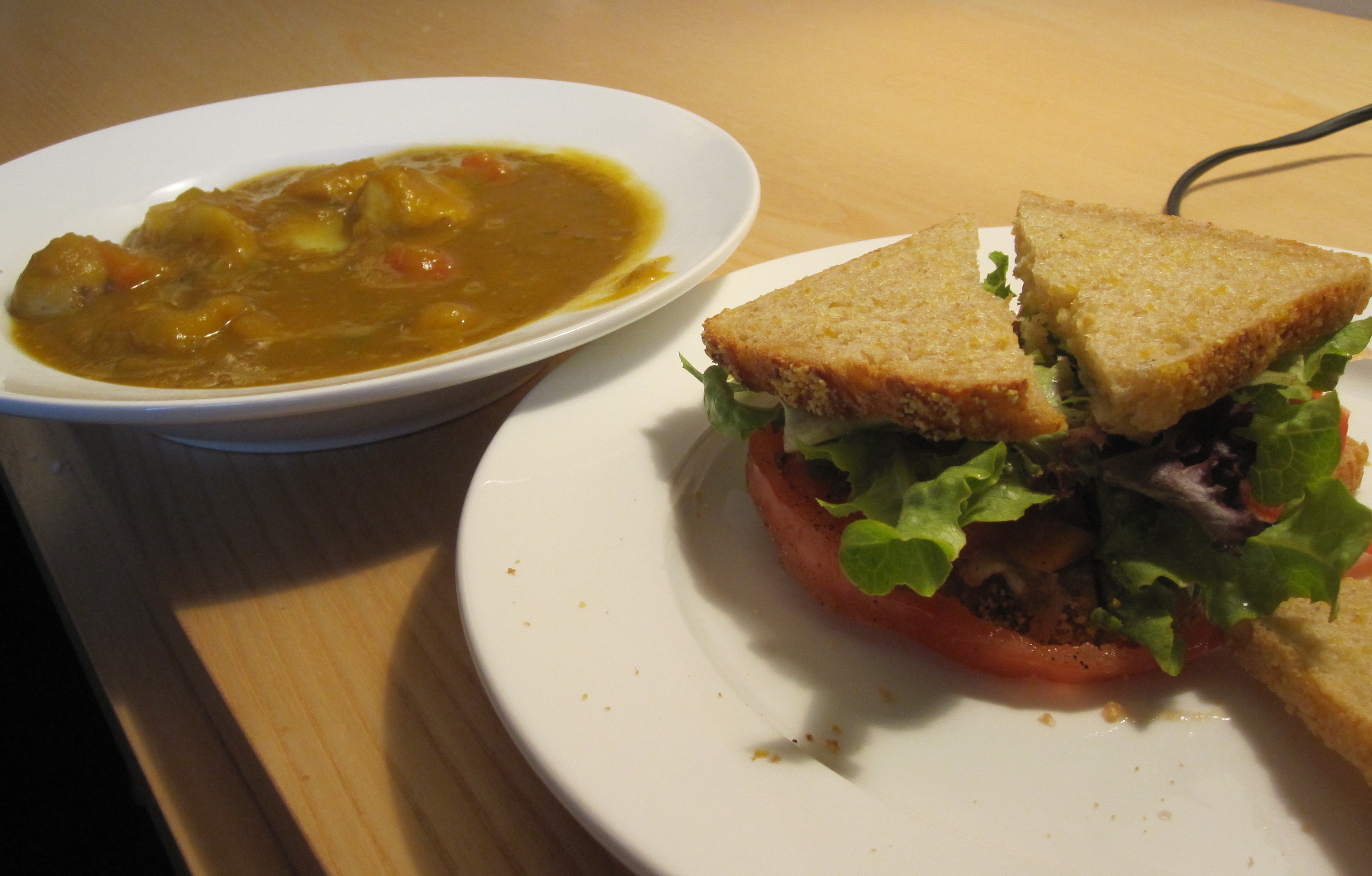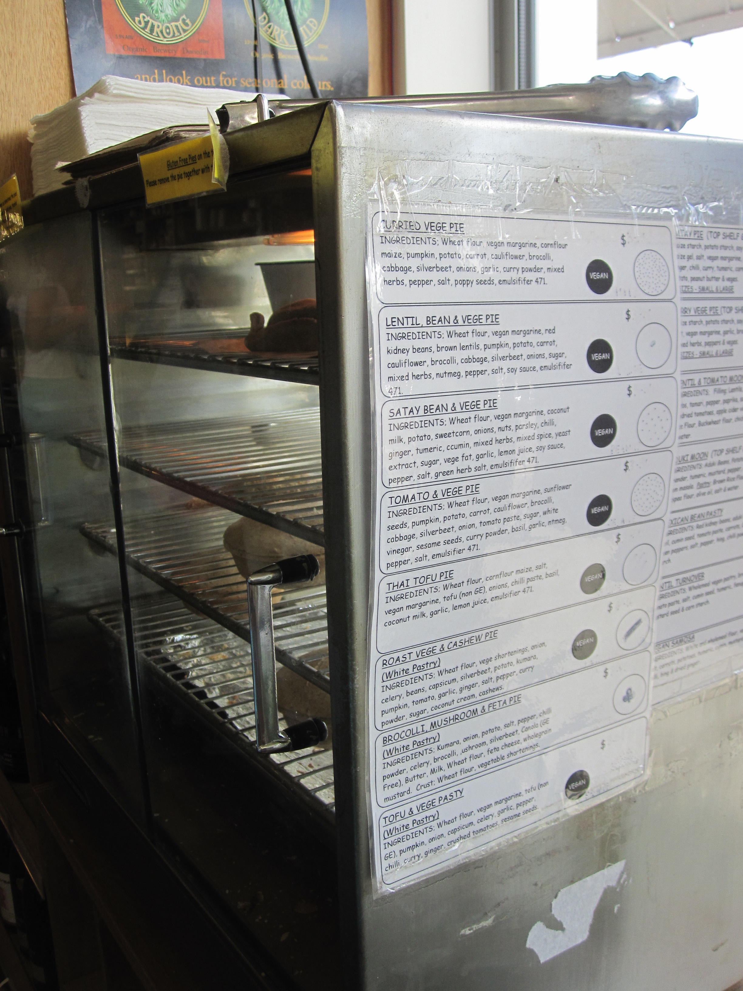 WoolWorth”s Grocery Store has the local soymilk/soy yogurt and these really awesome tomato basil pretzels. We hit up many or the restaurants listed on happycow.net, too.
